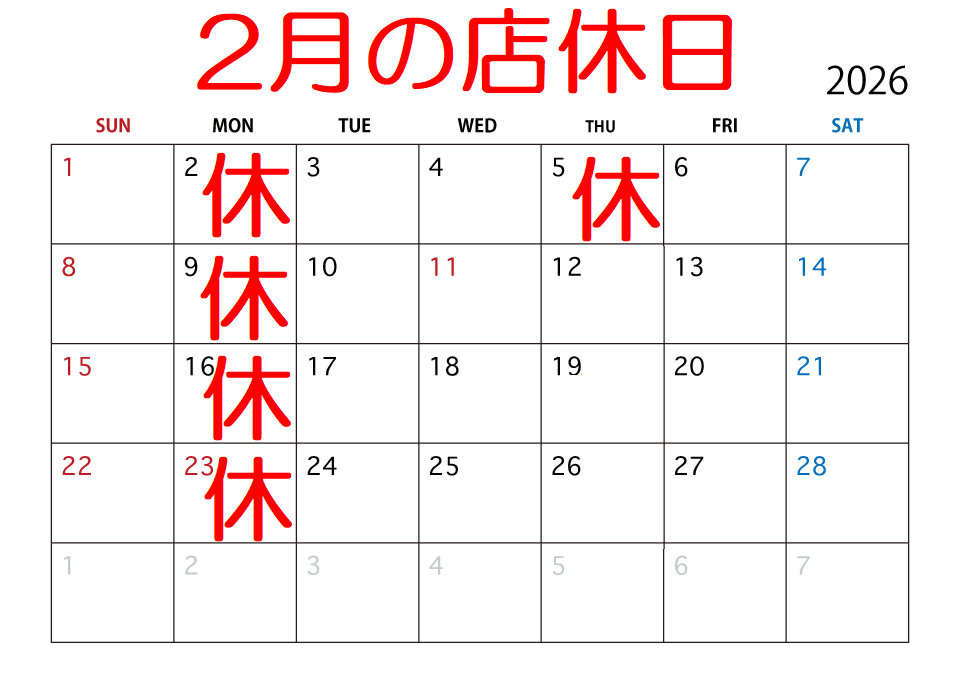 定休日:毎週月&木 年末年始他